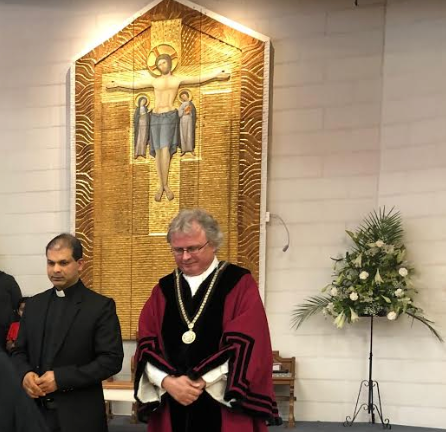 On Sunday 28 April, St Bernadine's Catholic Church was filled with around 150 people to celebrate imagination in our town. It was a most uplifting event that Fr Roy, the parish priest and I were delighted to host. In the presence of the Town Mace, we were graced with presentations from three local 'imagineers' who talked of the role that imagination played in their lives. (David Hall's speech can be found here.) The voices of the Buckingham Children's Choir soared to the rafters as they sang a Million Dreams. And everyone sang favoured hymns ably supported by Derrick Matthews on the Church organ. Both Fr Roy and I addressed everyone with our thoughts on imagination and how it fits into the Bible and our Town. We celebrated all faiths and beliefs with a flower ceremony. It was wonderful to welcome The Lord Lieutenant, the Queen's local representative along with fellow Mayors from two neighbouring towns of Aylesbury and Leighton Linslade, and the Chair of AVDC.