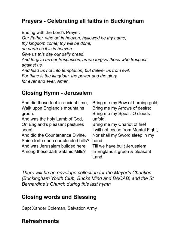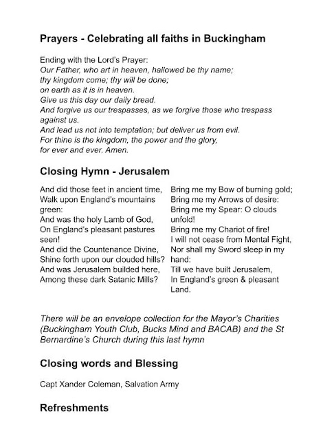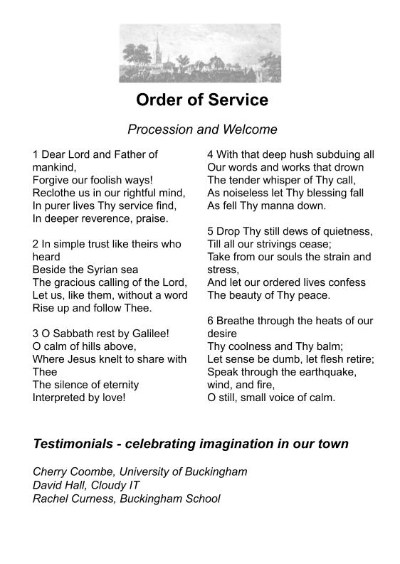 And this is what today is all about: reflecting on the spiritual in the civic and the civic in the spiritual. Let us all rejoice in the myriad of ways in which Buckingham people are using their imagination, determination and hope for a better world for everyone.