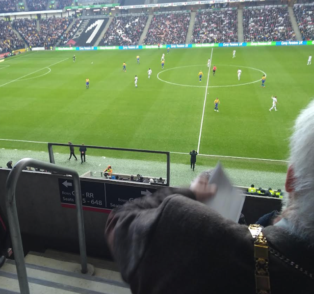 And the other twist to the afternoon was that the Mayor of Mansfield was going to join the MK Mayor & Mayoress and ourselves for lunch before the game. She did not arrive. We later found out why: she lost her position after Thursday's elections by two votes. The new Mayor (we assumed) did not have the fixture in his diary.